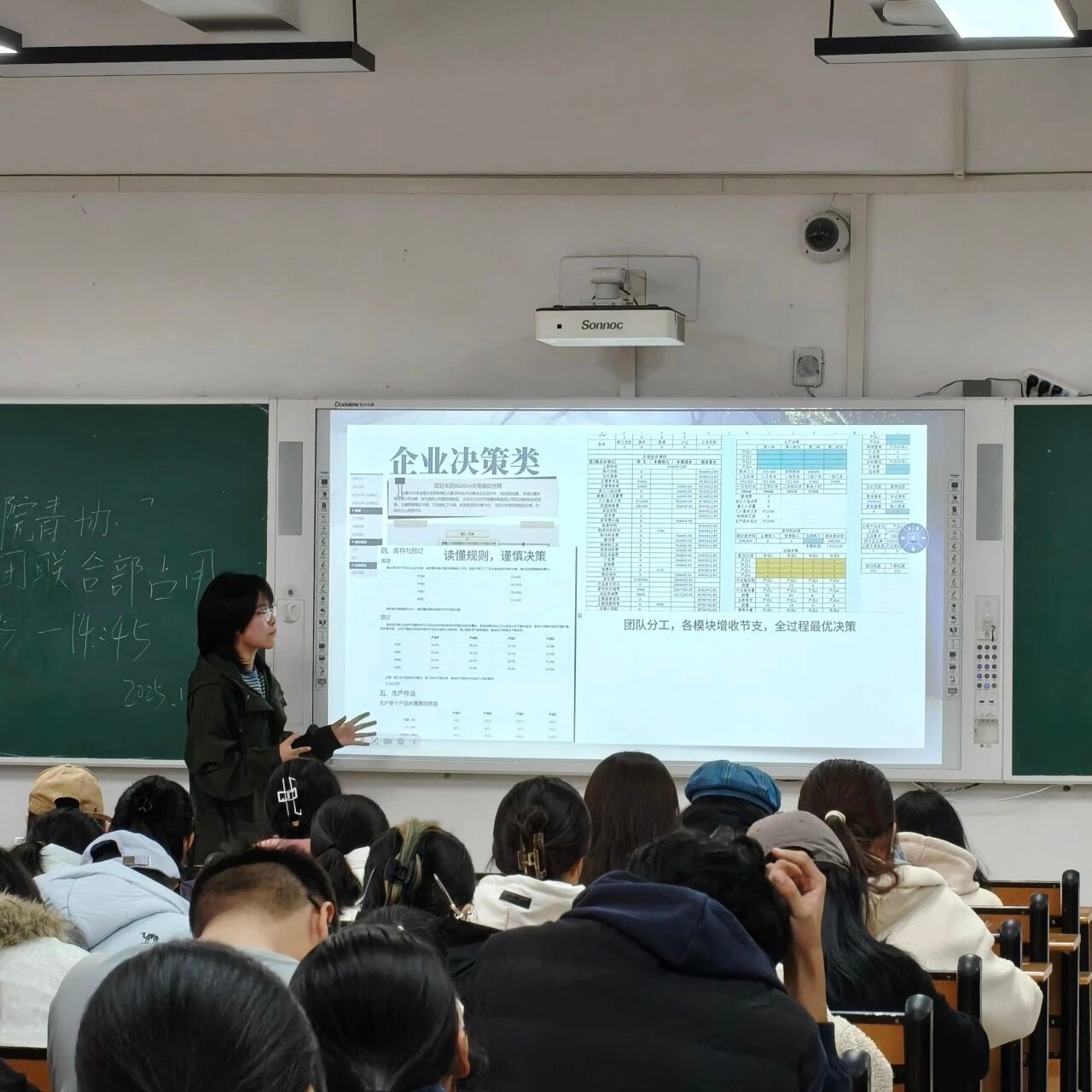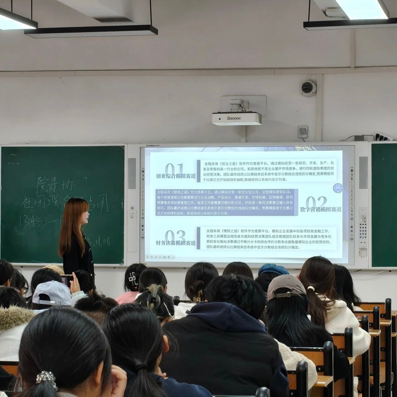活动伊始,赛事负责人对模拟经营类、策划市场调研类以及综合类等重点赛事进行了系统梳理,从赛制流程、评审标准到备赛要点,为在场同学清晰勾勒出参赛路径与能力提升方向,显著增强了同学们的参赛信心和备赛积极性。