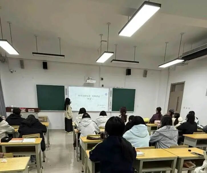 为帮助学生缓解秋冬季常见的焦虑情绪,筑牢心理健康防线,我院于11月10日在各班自习室举办了“秋冬治愈指南:和焦虑说‘再见’ ”心理主题班会。班会深入解析季节性情绪波动特点,传授科学调适技巧,用暖心关怀护航学子健康成长。