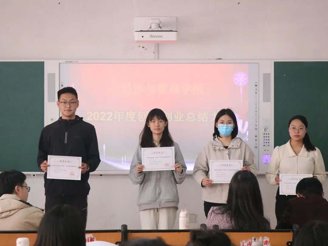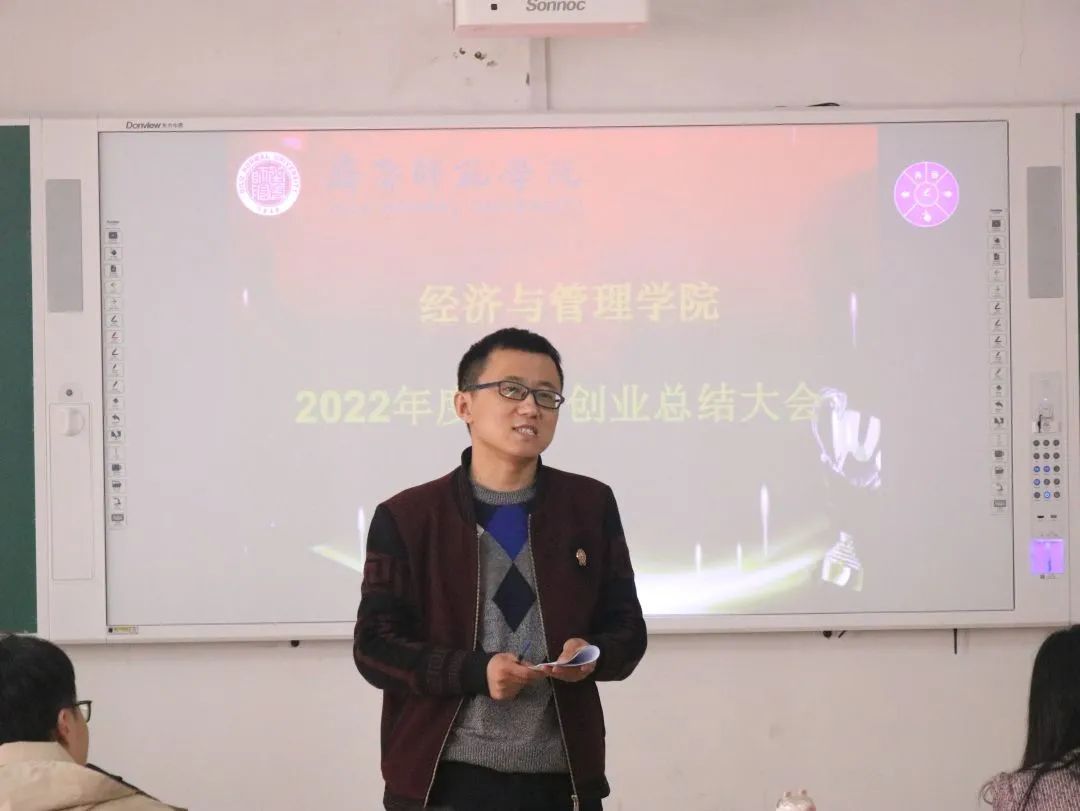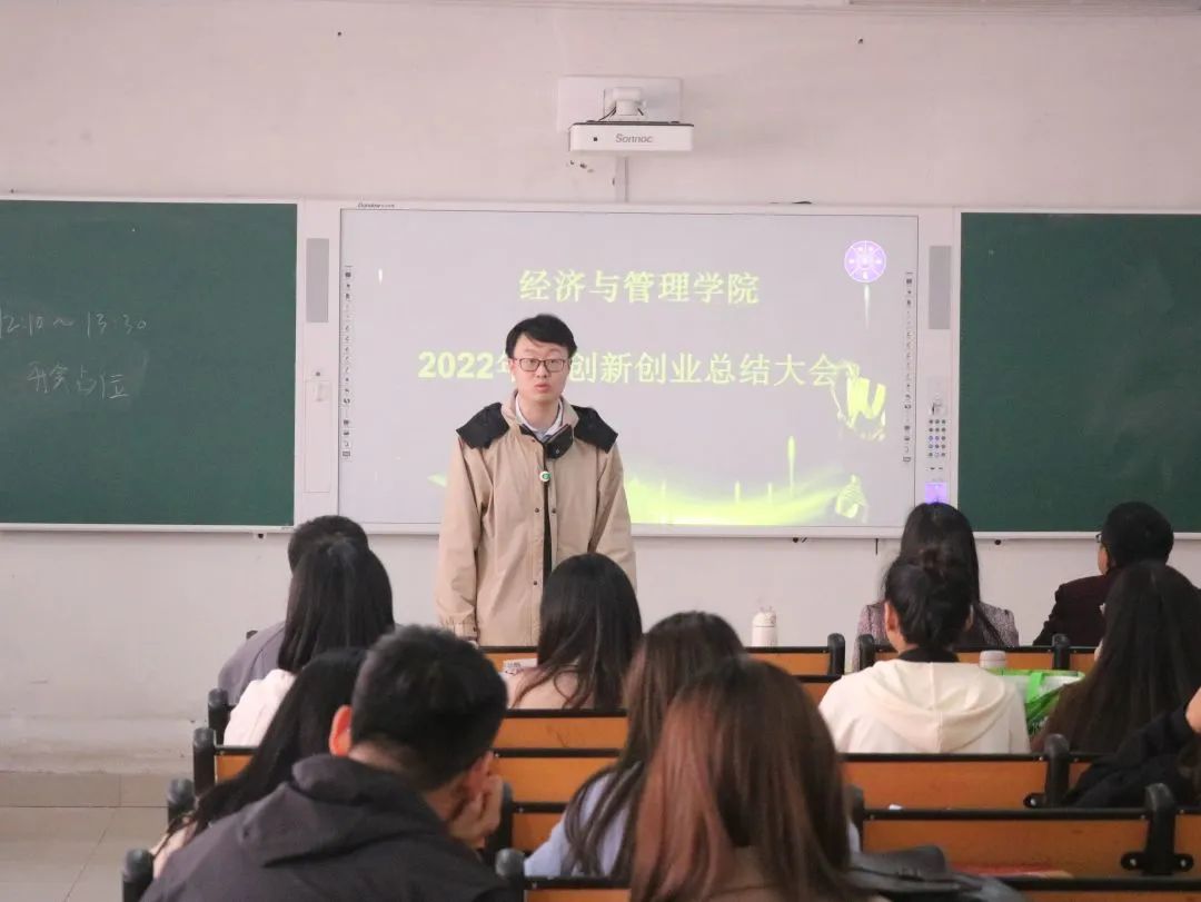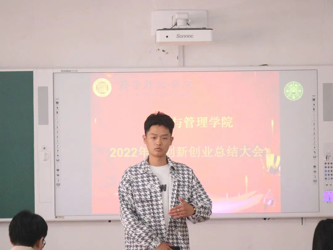 为了提高同学们的创新创业本领,培养学习意识,激发参赛激情,我院于3月31日12点30分在一教b208教室举行了我院2022年度创新创业总结大会。出席本次会议的有我院团总支书记高超、我院辅导员殷大鹏、徐爱林老师以及相关获奖团队的部分学生代表。本次会议由徐爱林老师主持。