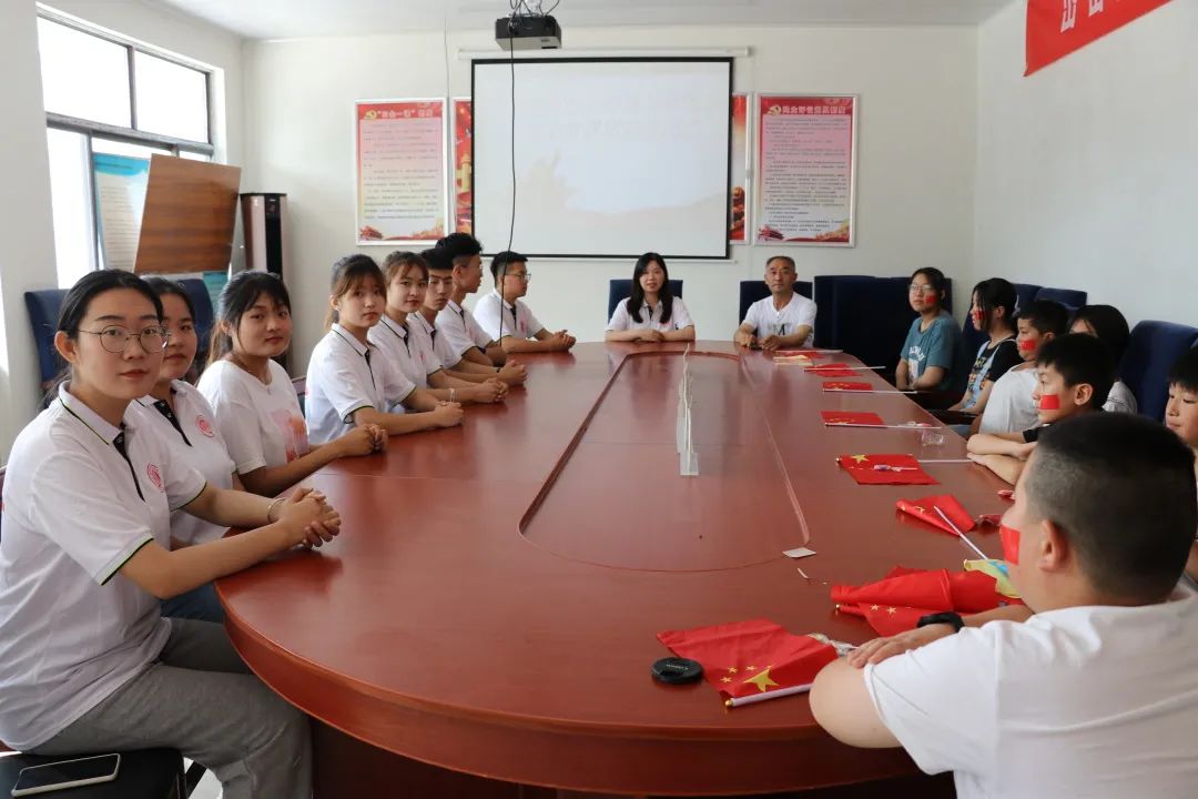 为深入学习贯彻习近平新时代中国特色社会主义思想,让当代青年学生积极为国家发展和社会主义现代化建设贡献智慧和力量,以实际行动庆祝中国共产党成立100周年。7月10日,yl9193永利集团“灿若星辰”服务队从永利集团章丘校区启程,赴济南市南山区柳埠镇岱密庵村开展党史宣讲活动。于岱密庵村党群活动中心的会议室举行了党史宣讲团活动启动仪式。yl9193永利集团团委书记高超,辅导员老师徐文婷,岱密庵村党支部书记徐加颜、灿若星辰服务队全体成员以及岱密庵村中小学生代表参加了此次党史宣讲启动仪式。