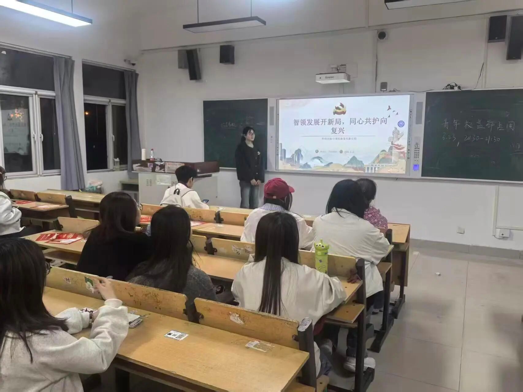 活动伊始,主持人以数智技术赋能基层治理、推动产业升级的典型案例为切入点,系统解读“智领发展”与“同心共护”的核心内涵,深入阐释数智时代青年学子的责任与担当。活动通过班会分享、视频展示等形式,讲述青年依托数智技术投身创新创业、助力乡村振兴的鲜活事迹,同学们深刻认识数智发展的时代价值,领悟“同心共护”对民族复兴的重要意义,明确自身在智领发展、共赴复兴征程中的使命。