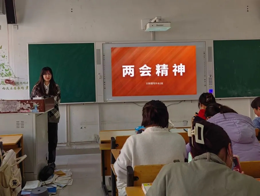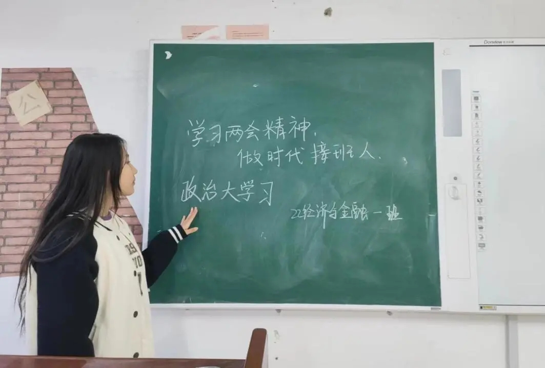 为深入学习两会精神,抓住时代发展机遇,提高同学们对国家政治的关注度和参与度,我院2022级全体同学于3月17日在一教各班级教室进行了“学习两会精神,做时代接班人”为主题的政治学习。