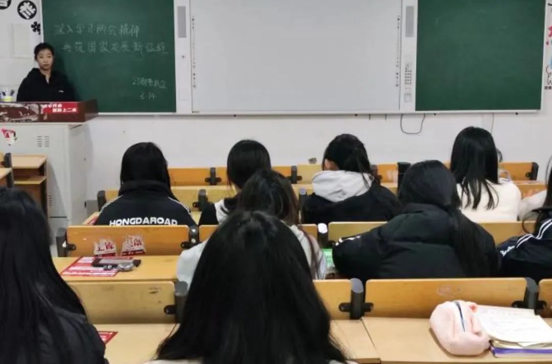 为了深入学习两会精神,帮助同学们更加清晰地认识国家的发展方向和目标,从而更好地为国家的发展贡献自己的力量。3月13日下午,我院23级全体同学于一教各班自习室内开展了以“深入学习两会精神,共筑国家发展新征程”为主题的政治学习会议。