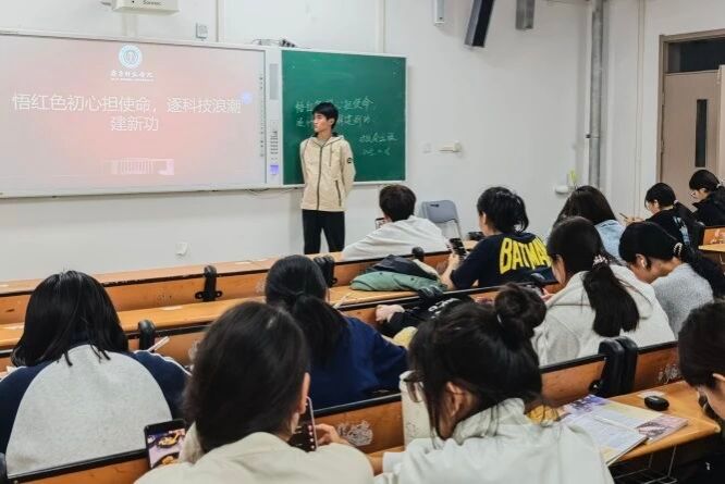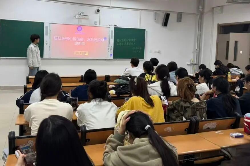 活动伊始,主持人结合生动详实的党史资料与科技发展前沿动态,系统阐释了红色初心的深刻内涵与科技创新的时代价值。从革命战争年代先辈们坚守信仰、不畏牺牲的英雄事迹,到社会主义建设时期科技工作者攻坚克难、自力更生的感人事迹;从改革开放以来国家科技事业的飞速发展,到新时代实施创新驱动发展战略、建设世界科技强国的宏伟蓝图,让同学们在历史与现实的交汇中,深刻体悟到红色精神的力量与科技报国的责任。