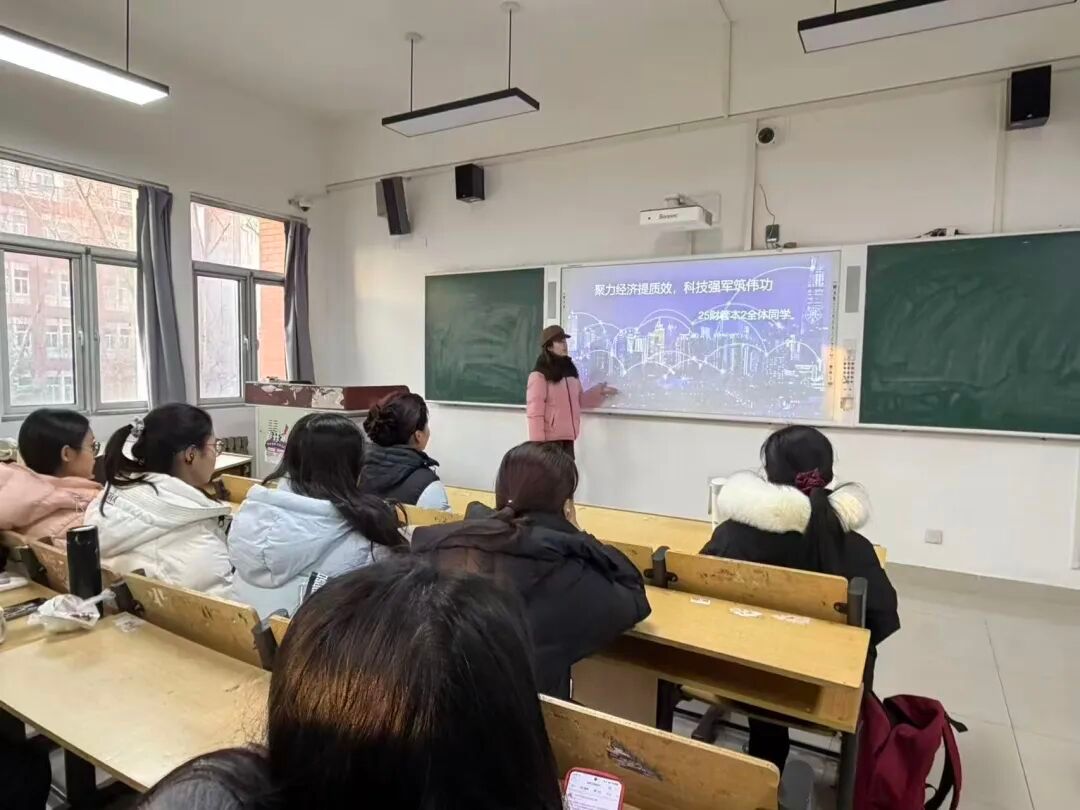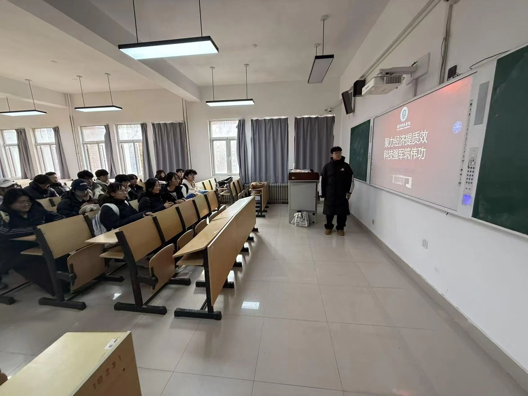 活动伊始,各班主持人结合详实数据图表与鲜活建设成就,系统阐述经济发展提质增效与科技强军的深层联系。从改革开放以来经济持续快速发展的“中国奇迹”,到新时代贯彻新发展理念、构建新发展格局的战略部署;从传统产业转型升级到战略性新兴产业蓬勃发展的生动实践,再到科技自立自强对筑牢强国强军坚实根基的关键作用,让同学们清晰把握经济高质量发展与国防科技现代化协同共进的壮阔脉络。