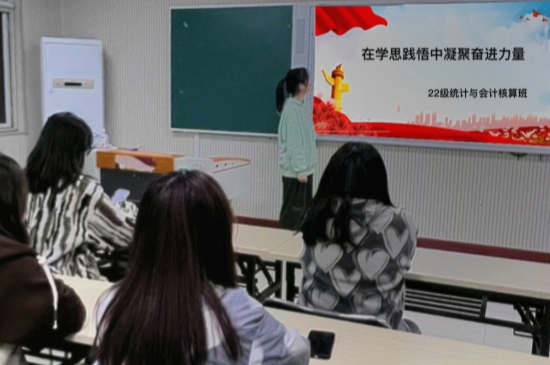为了深入贯彻党的二十大精神,引领青年大学生奋进新时代,凝聚新力量。4月27日下午,我院全体学生在各班级教室内,进行了以“在学思践悟中凝聚奋进力量”为主题的政治大学习。