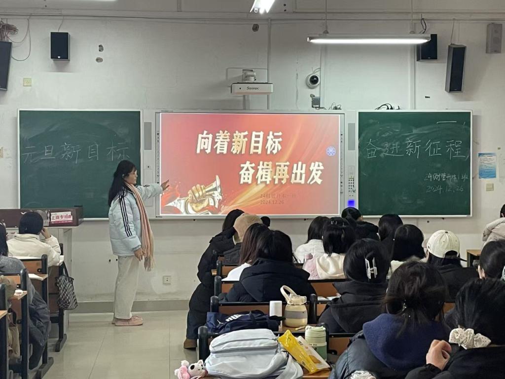 为激励同学们在新的一年里奋勇前行,我院24级全体同学于12月26日在各班自习教室开展了以“元旦新目标,奋进新征程”为主题的政治学习活动。