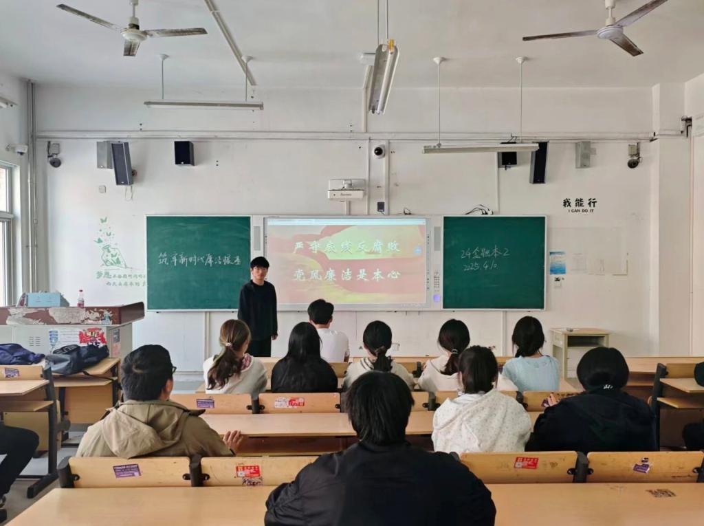 为进一步加强党风廉政教育,提升同学们的廉洁意识,yl9193永利集团24级全体同学于4月10日在各班自习教室开展了以“筑牢新时代廉洁根基”为主题的政治学习活动。此次活动旨在引导同学们深刻认识廉洁自律的重要性,树立正确的价值观和职业观,为未来的学习和工作奠定坚实的思想基础。