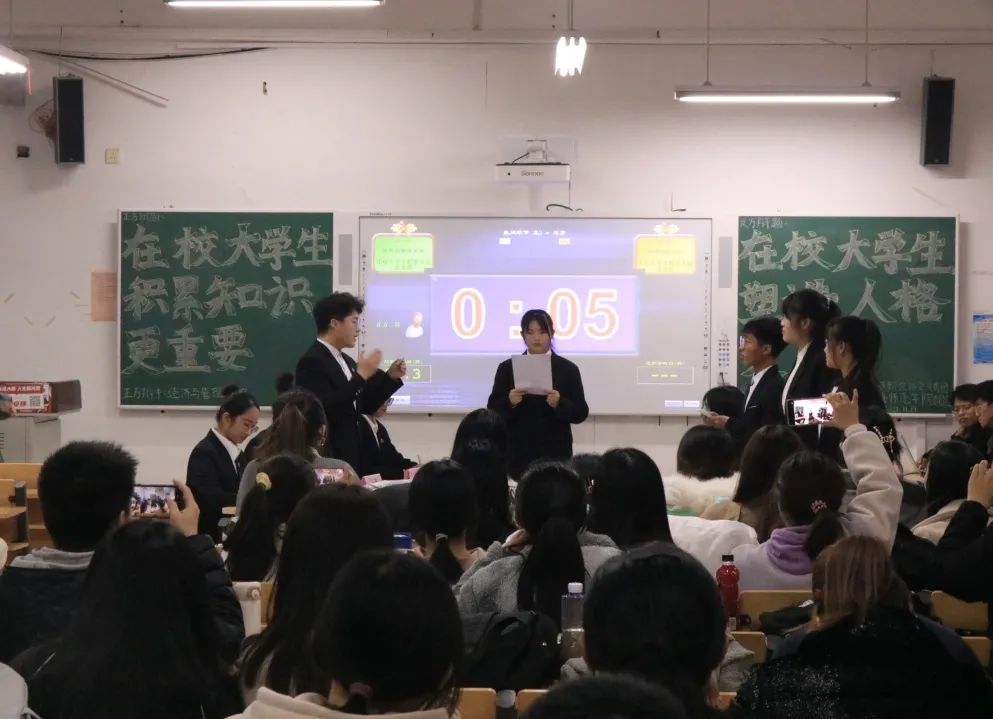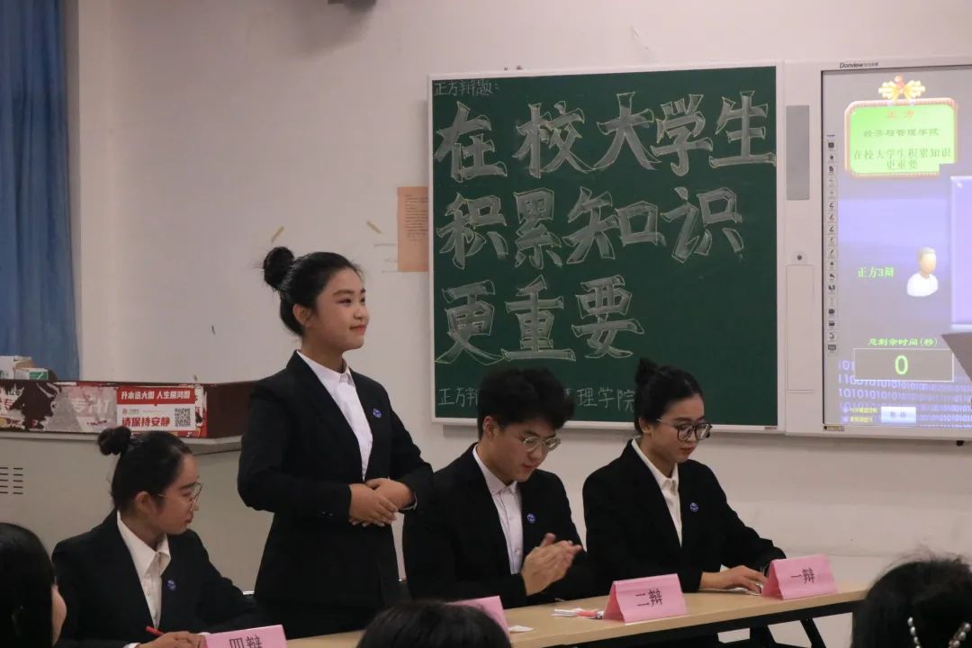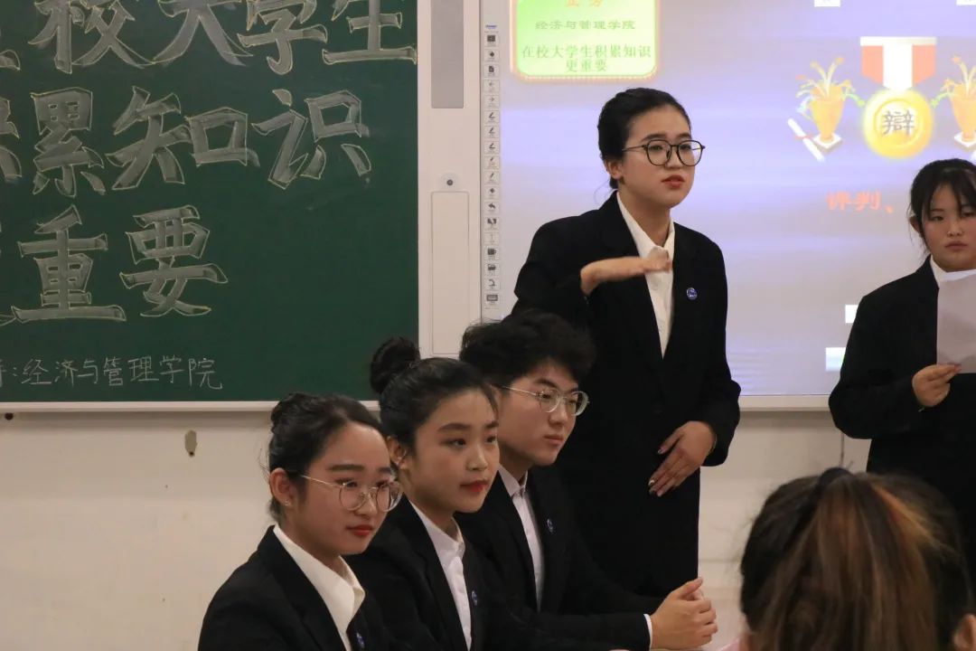 本次辩论赛正方我院的辩题为:在校大学生积累知识更重要。反方教师教育学院的辩题为:在校大学生塑造人格更重要。