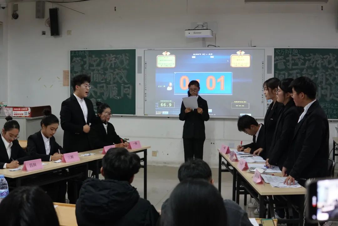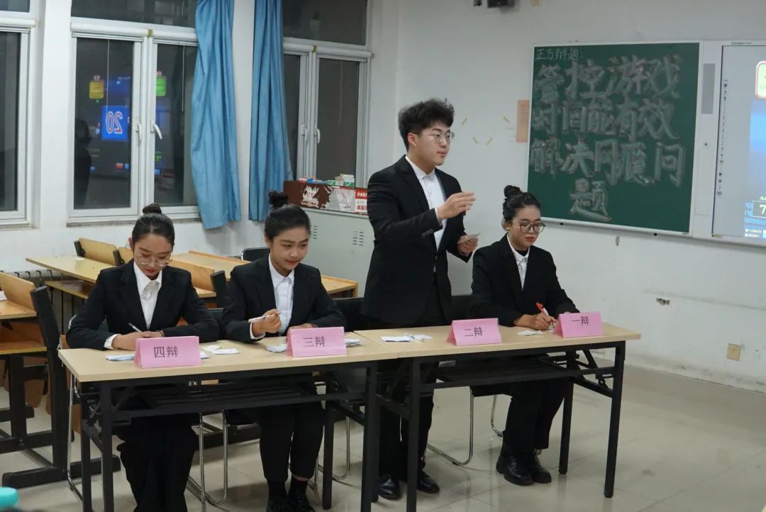 本次辩论赛正方我院的辩题为:管控游戏时间能有效解决网瘾问题。反方音乐学院的辩题为:管控游戏时间不能有效解决网瘾问题。双方辩手摩拳擦掌,胸有成竹。