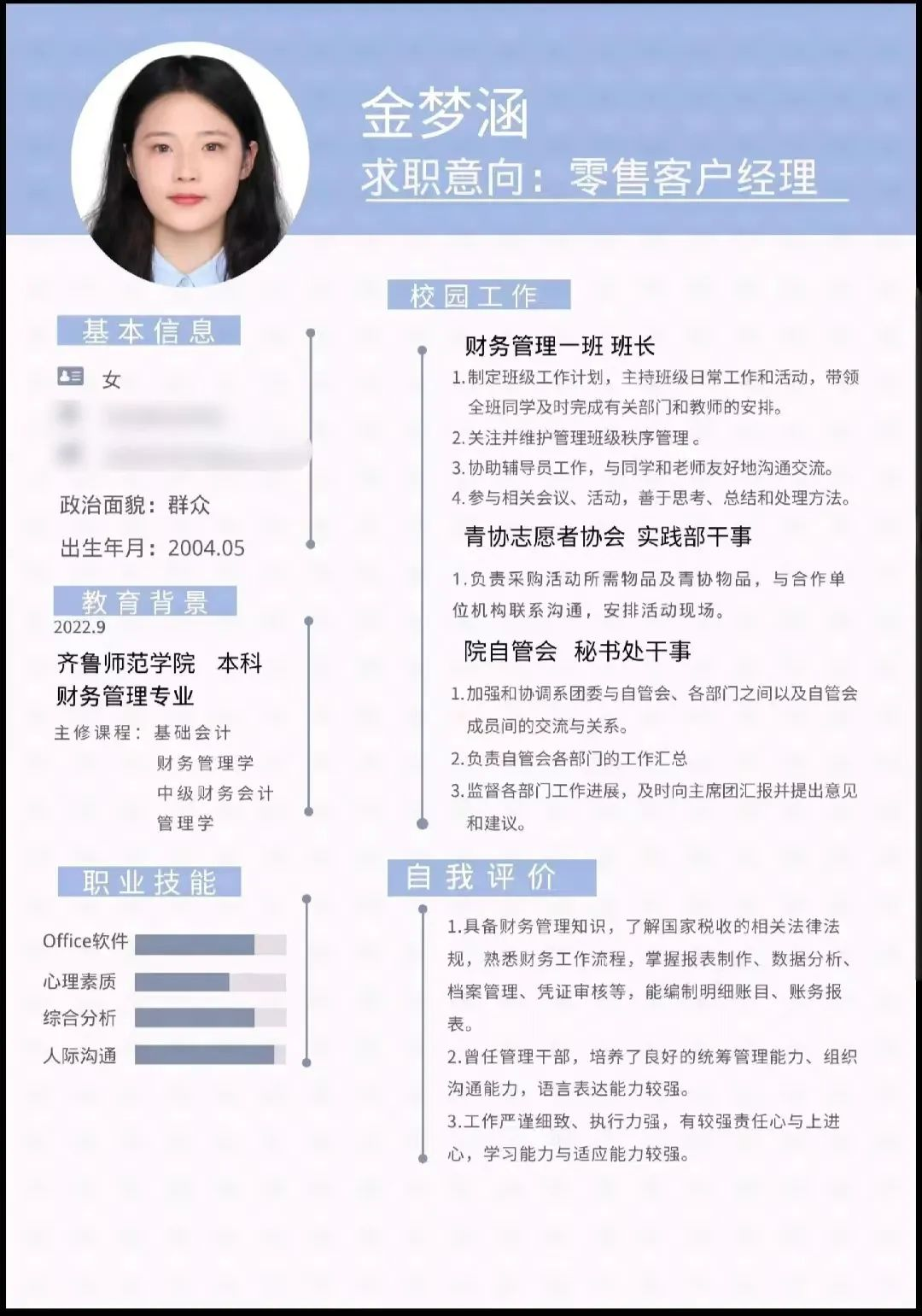 2022级财务管理一班 金梦涵