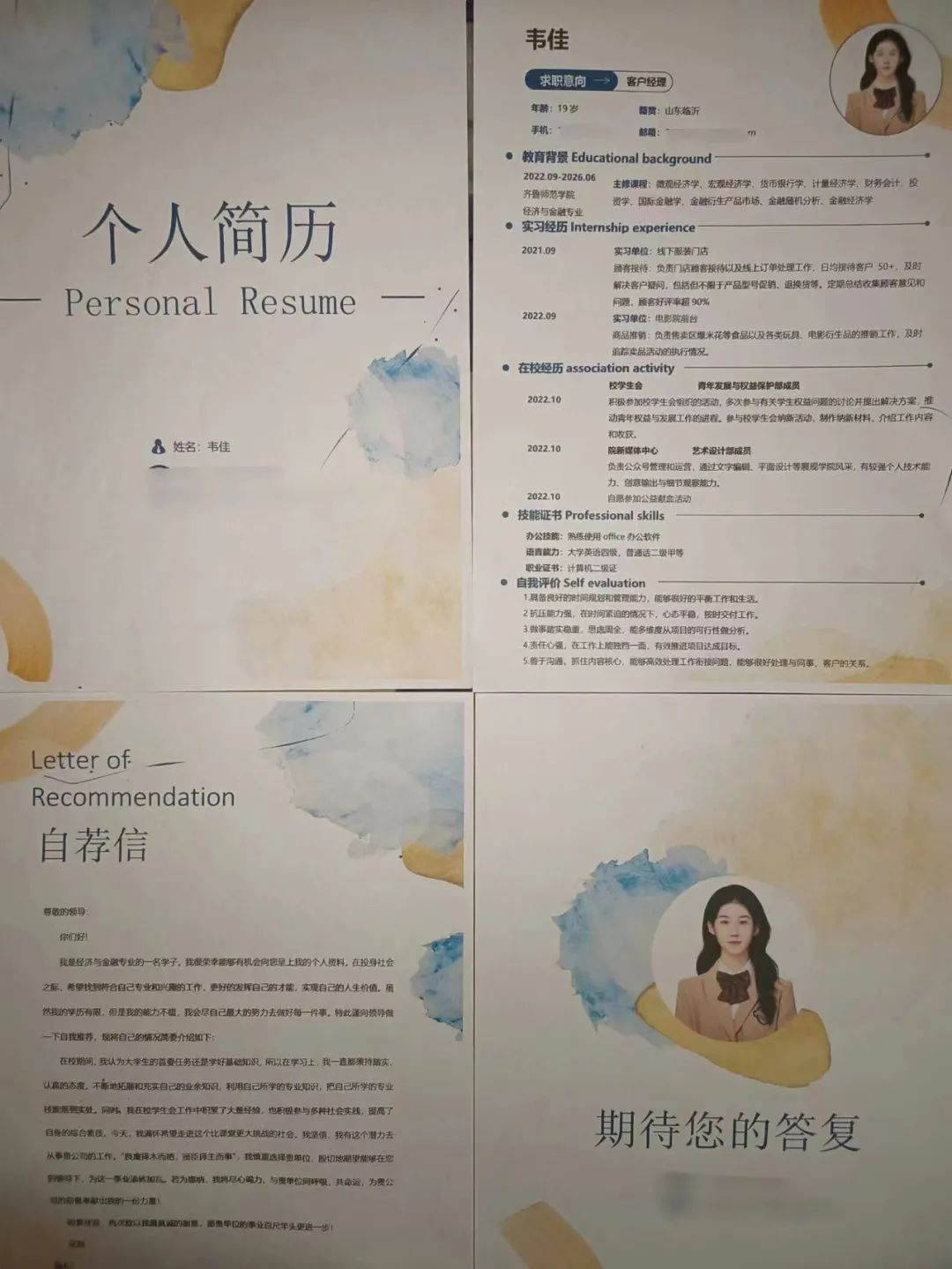 2022级经济与金融校企班 韩鲁玉