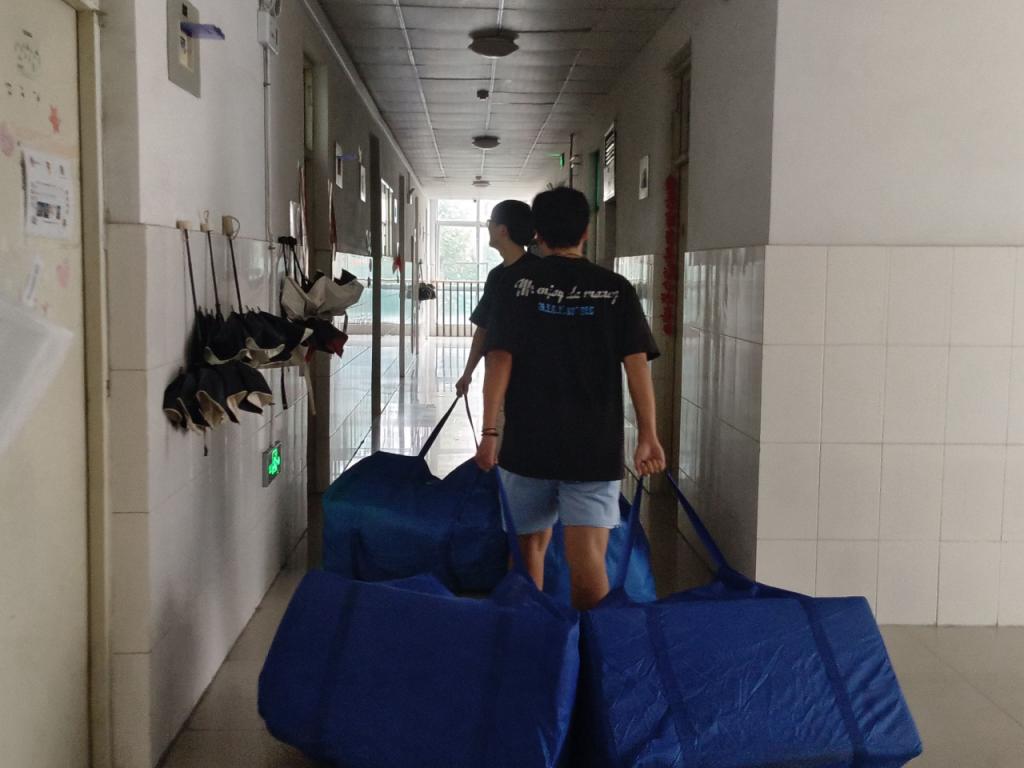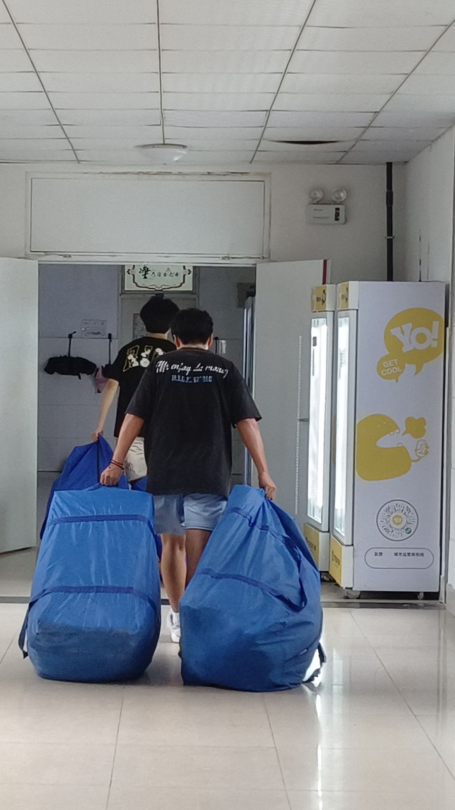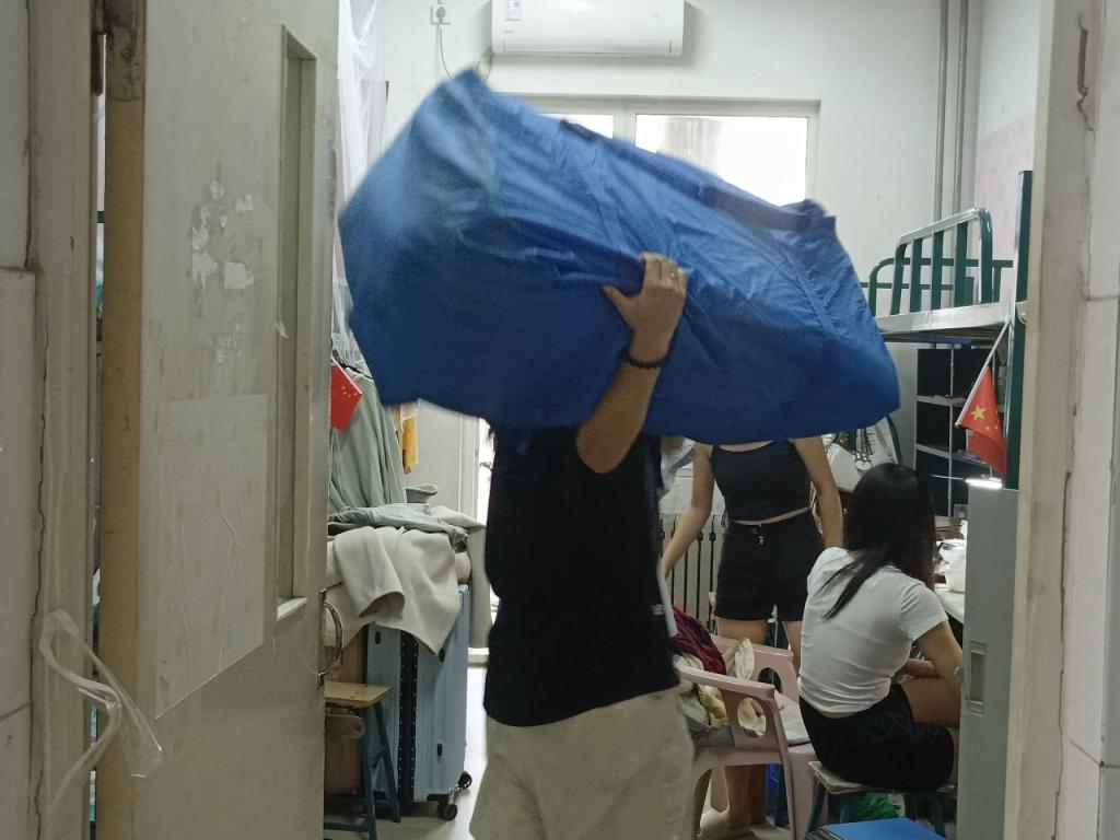 在卧具搬运过程中,志愿者们彼此协作,以无私奉献的精神为校园注入了积极的能量。他们的行为体现了仁爱、礼让与互助的美德,彰显了君子的风范。
