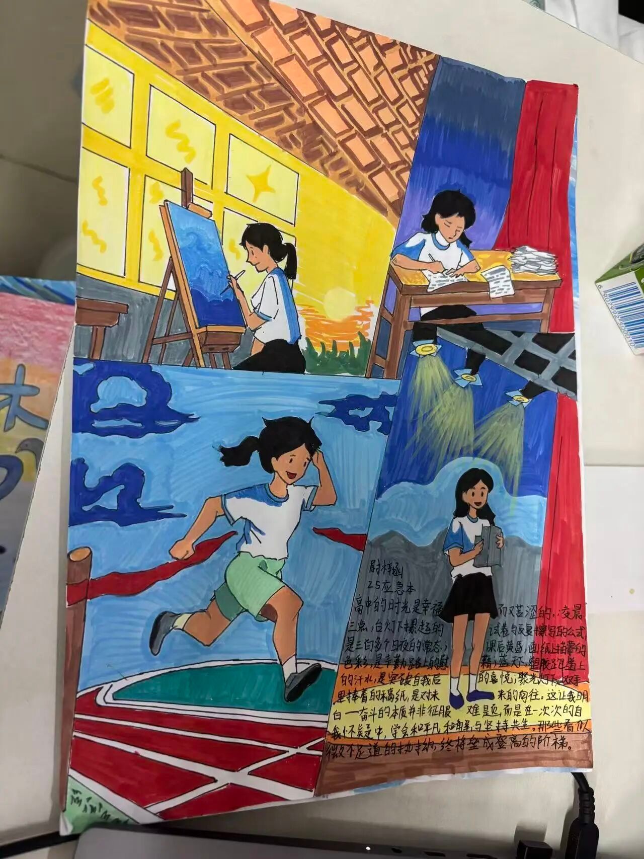 活动前期,青年权益部明确作品原创性、主题契合度等核心要求,详细告知提交时间与地点;活动期间,学子们以画笔为媒,将攻克学业难题、坚持兴趣热爱、突破自我局限等真实经历融入漫画、素描、彩铅等多元艺术形式,用作品定格青春奋斗瞬间,搭配精炼文字说明补充故事背景与创作感悟;活动后期,评审团严格按照主题契合度、原创真实性、艺术表现力及文字说明四大维度评分,最终评选出一等奖3名、二等奖5名、三等奖7名。