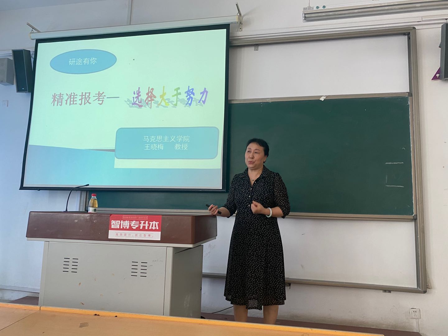 王晓梅书记从考研形势、报考学校、考研准备复习、考研流程、考研调剂等方面进行了考研指导。讲座中王晓梅书记给学生们指出要从自身实际情况出发,既不好高骛远,也不妄自菲薄,结合自身能力、院校考情及竞争力度等精准报考,分析考研数据,给出了自己的意见和建议。她还提醒同学们要合理安排时间,做到劳逸结合。王晓梅书记在作本次讲座之前,提前深入了解、分析、研究我院2016级和2017级学生考研的整体情况,做到了有的放矢,点对点,面对面的指导,她说:“同学们既然选择了考研,就不要轻言放弃,要坚定信心,持之以恒,有志者事竟成”。