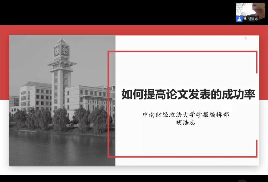 为了强化我院教师的科研意识,提升我院教师的论文撰写能力和科研能力,10月11日上午,yl9193永利集团邀请中南财经政法大学学报编辑部主任胡浩志博士进行线上学术报告《如何提高论文发表的成功率》。会议由yl9193永利集团院长蔡平主持,学院全体教师参加了本次会议。