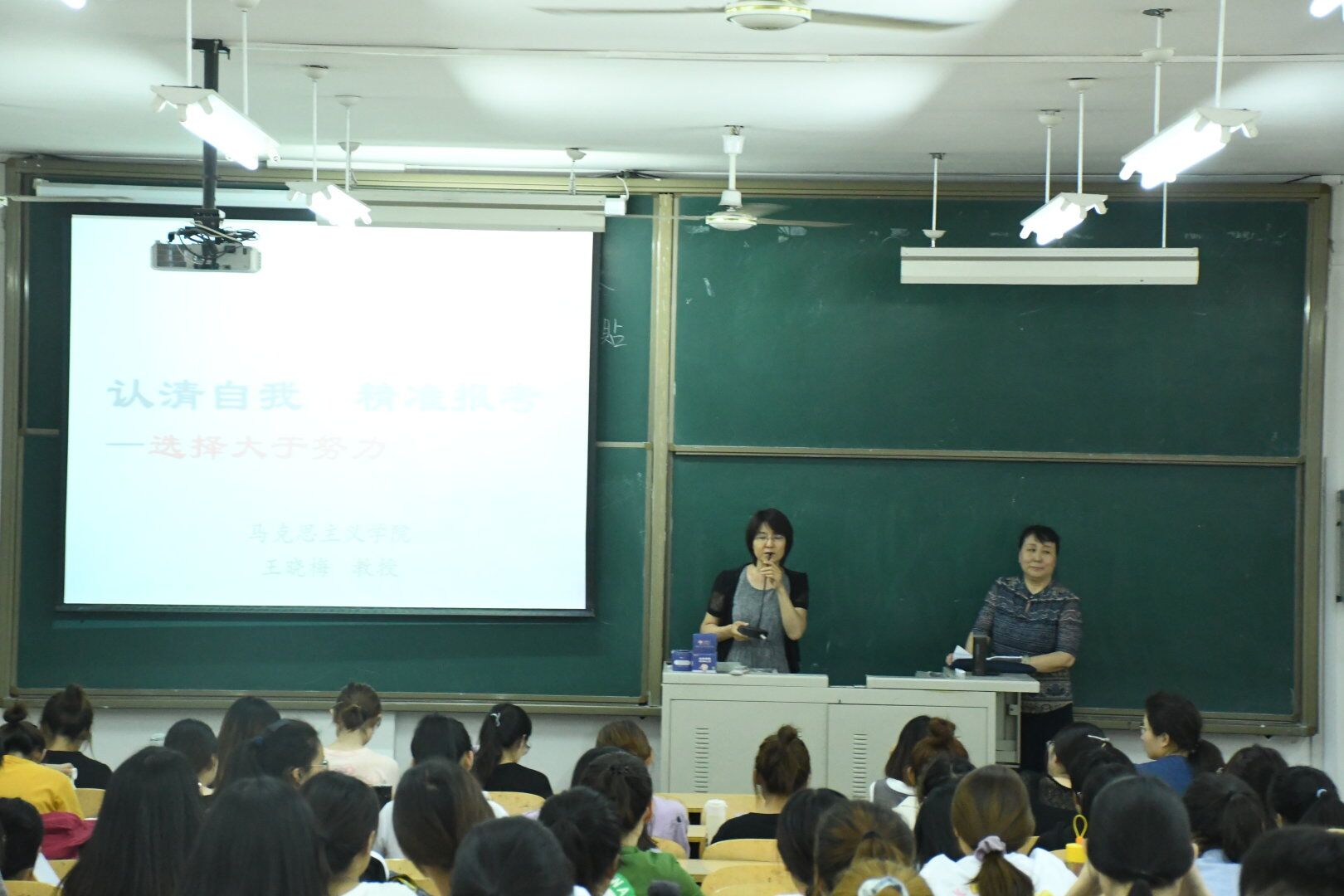 讲座一开始,王晓梅教授运用各种数据帮助学生精准分析考研方向,王晓梅教授认为考研的报考选择非常重要,一定要精准报考,王教授用了许多往年的考研实例帮助同学们分析考研各个环节,利用最近几年的考研数据来帮助同学们预估学校,这让在场的学生受益匪浅。