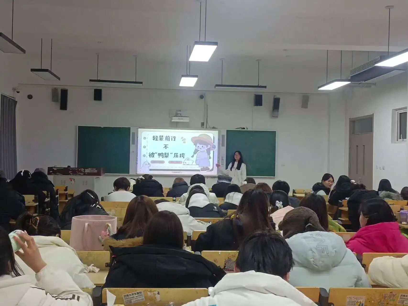 为切实帮助学生识别学习生活中的压力来源,掌握科学有效的减压技巧,提升心理健康水平,我院学生会生活心理部于12月3日19时在一号教学楼各班级晚自习教室开展“轻装前行,不被‘鸭梨’压垮”主题心理班会。