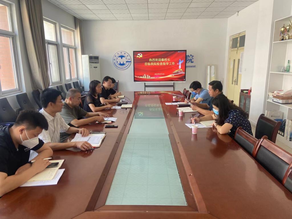 9月4日上午,党委副书记、校长秦梦华一行深入我院调研指导工作。党委办公室、校长办公室副主任李萧等陪同调研,我院党政领导班子和教师代表参加座谈会。
