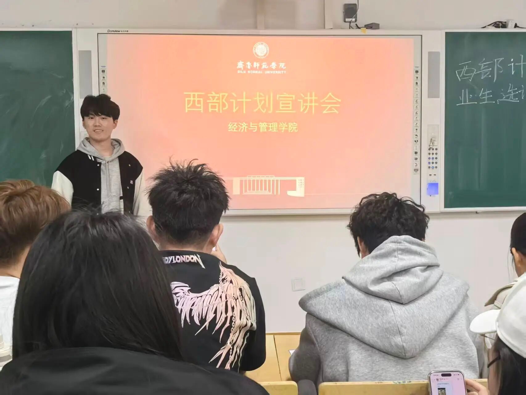 分享会中,优秀毕业生张森超,高蜂和钱盈江三人,携着西部热土的烟火气与奋斗荣光,结合自身参与西部计划的亲身实践与基层淬炼经历,围绕西部计划政策解读、岗位选择方向、基层日常工作等内容,展开了一场饱含温度与深度的细致分享。他们以条理清晰的脉络,系统拆解了西部计划的报名流程、服务岗位的多元内涵及未来发展的广阔蓝图;更以鲜活生动的真实案例,将自己在基层一线勇担使命、破茧成蝶的成长蜕变娓娓道来,分享了在服务群众、攻坚克难过程中的深刻感悟与温暖收获。现场同学反响热烈,眼眸中满是向往与热忱。