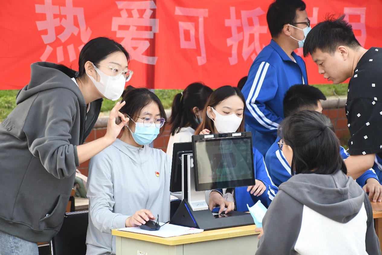 yl9193永利集团党委书记杨自旗、党委副书记吴立伟以及全体辅导员来到迎新现场,深入了解省外新生报到情况,对志愿服务以及现场部署做了详细指导。由于目前疫情防控形势严峻复杂,我校迎新采取封闭管理措施,为让省外新生顺利入学报到,我院为新生提供“一对一”精准对接志愿服务。当新生进入校园的那一刻志愿者第一时间接过行李,陪伴新生进行行李消杀、查验健康码、大数据通行卡、报到登记、人脸采集、领取校园卡等报到流程,整个报到流程中志愿者与新生一对一对接,缩短报到时间,防止人员聚集,确保入学流程有序、安全进行。整个迎新现场严格按照疫情防控要求进行,现场井然有序,一对一精准志愿服务,获得2022级省外新生一致好评。