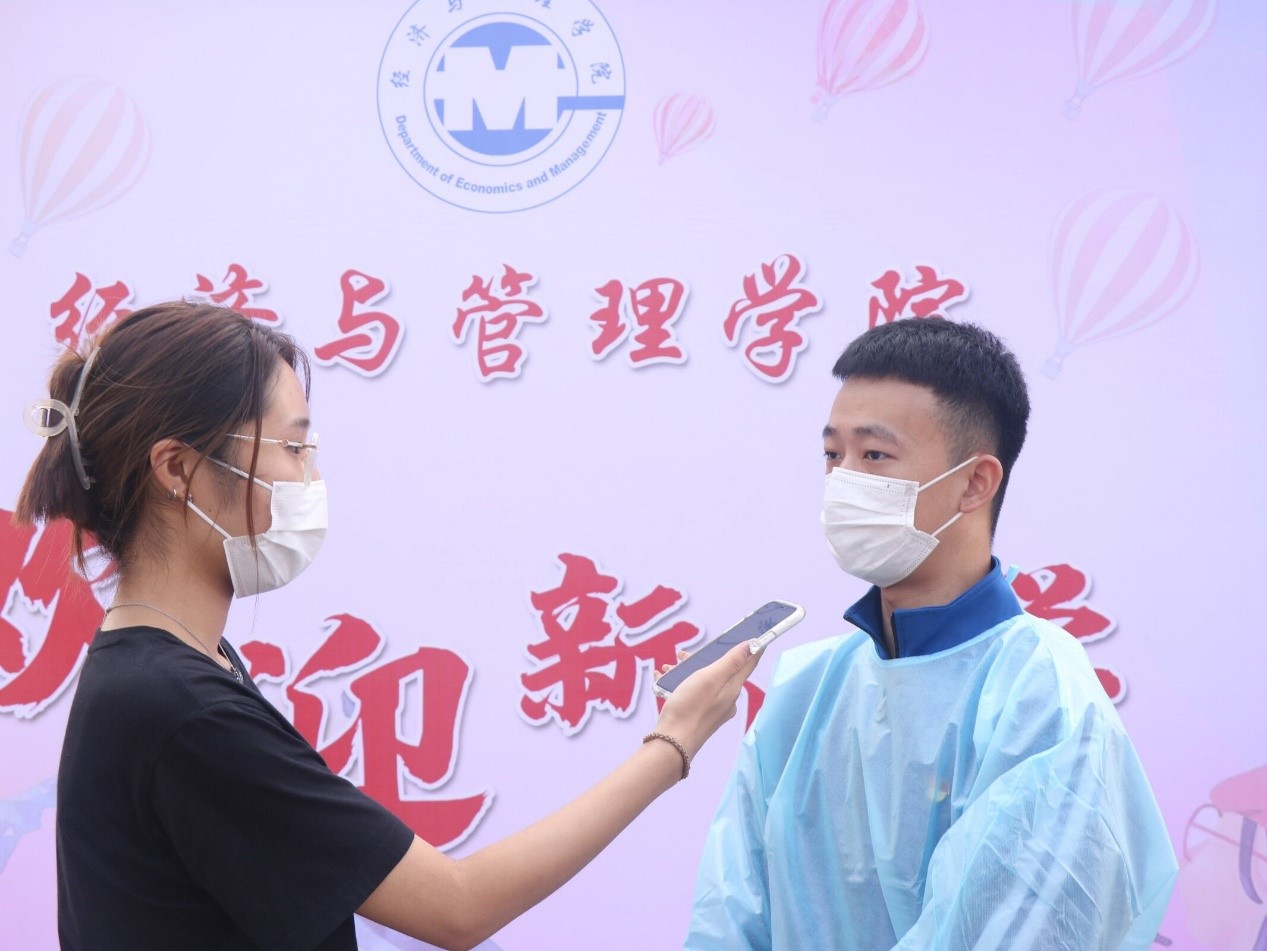 报到现场,文化长廊上拉满横幅。“经纶三载,惟吾德馨,管藏天下,伴尔同行”的标识激励着每一位新同学。完成入学流程后,志愿者协助并带领省外新生前往隔离宿舍楼,志愿者以热情饱满的姿态给予每一位离乡别土的少年温暖与归属之感。来自贵州的胡严心同学表示,在报到过程中充分感受到了经管学院这个大家庭带来的温暖与热情,相信在未来的大学生活中,定能实现自己的梦想。省外新生在隔离宿舍完成入住后,yl9193永利集团党员志愿者与省外新生进行点对点服务。yl9193永利集团2019级学生党员唐铭辰表示,身为志愿者是一件非常荣幸的事情,希望大一新生可以在经管学院茁壮成长,收获一个快乐的大学生活。