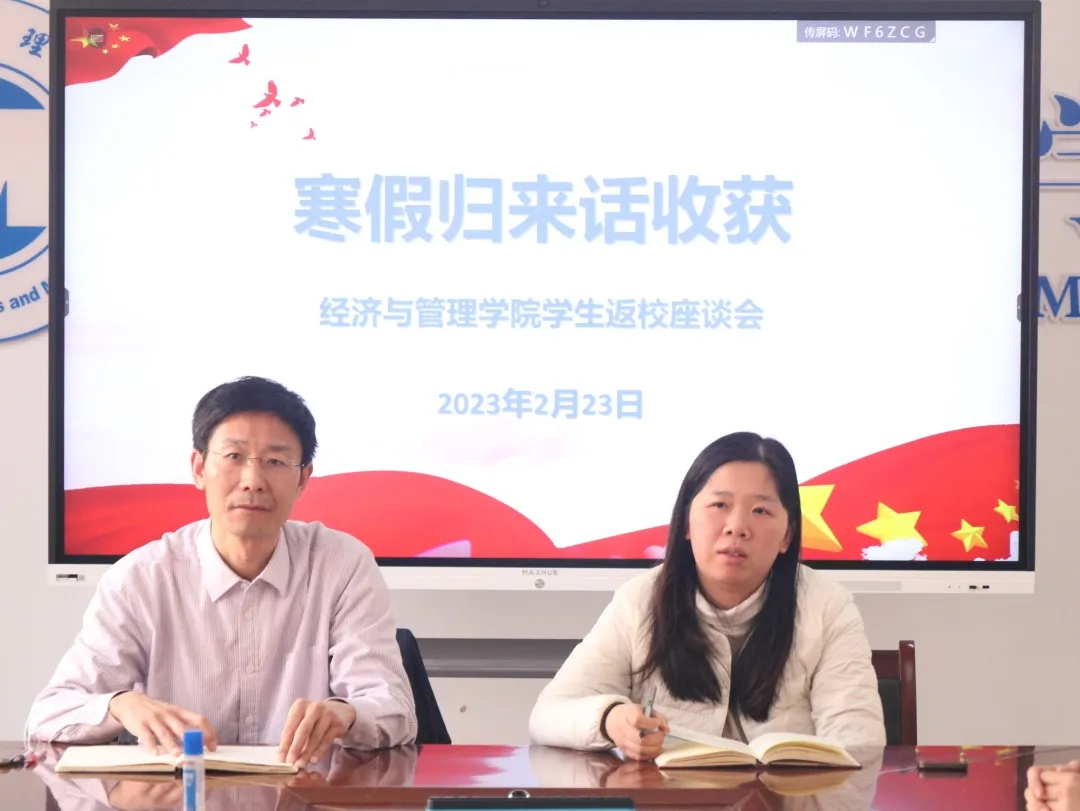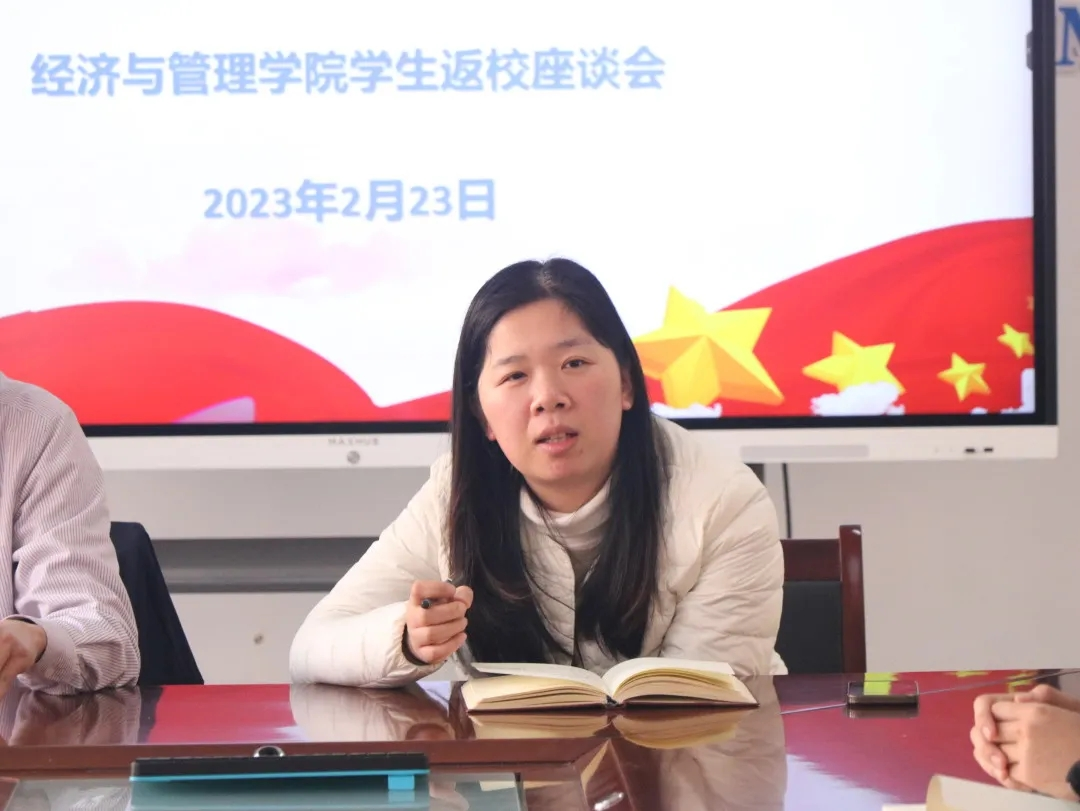 2023年2月23日14:30,我院学生返校座谈会于1教B206举行,出席本次会议的有我院党委副书记吴立伟、我院团总支书记高超、各学生组织代表及新生代表。