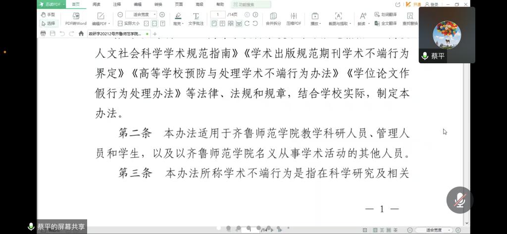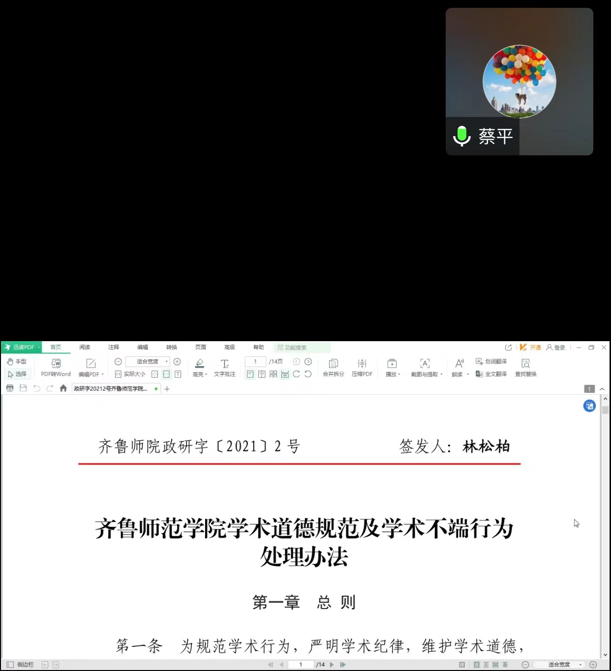 为响应学校关于科研诚信的倡导,营造学院风清气正的育人环境和求真务实的学术氛围,反对不良学风,遏制学术不端行为,3月20日中午,我院组织全体教师开展科研诚信的宣讲教育。会议由院长蔡平主持。