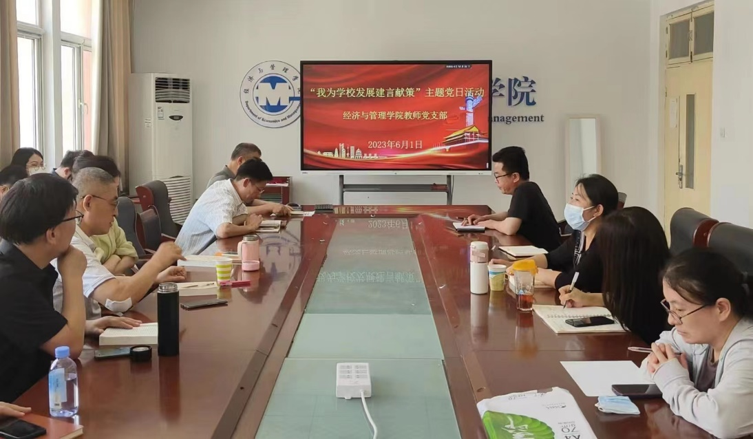 学习贯彻习近平新时代中国特色社会主义思想主题教育开展以来,我院党委把“唯实唯勤、先锋先行”贯穿主题教育始终,把“大学习、大调研、大提升”活动作为重要载体;按照学院主题教育方案要求,教师党支部于2023年6月1日下午举行了“我为学校发展建言献策”主题党日活动。此次活动由教师支部书记郭莹主持,全体教师党员参加。