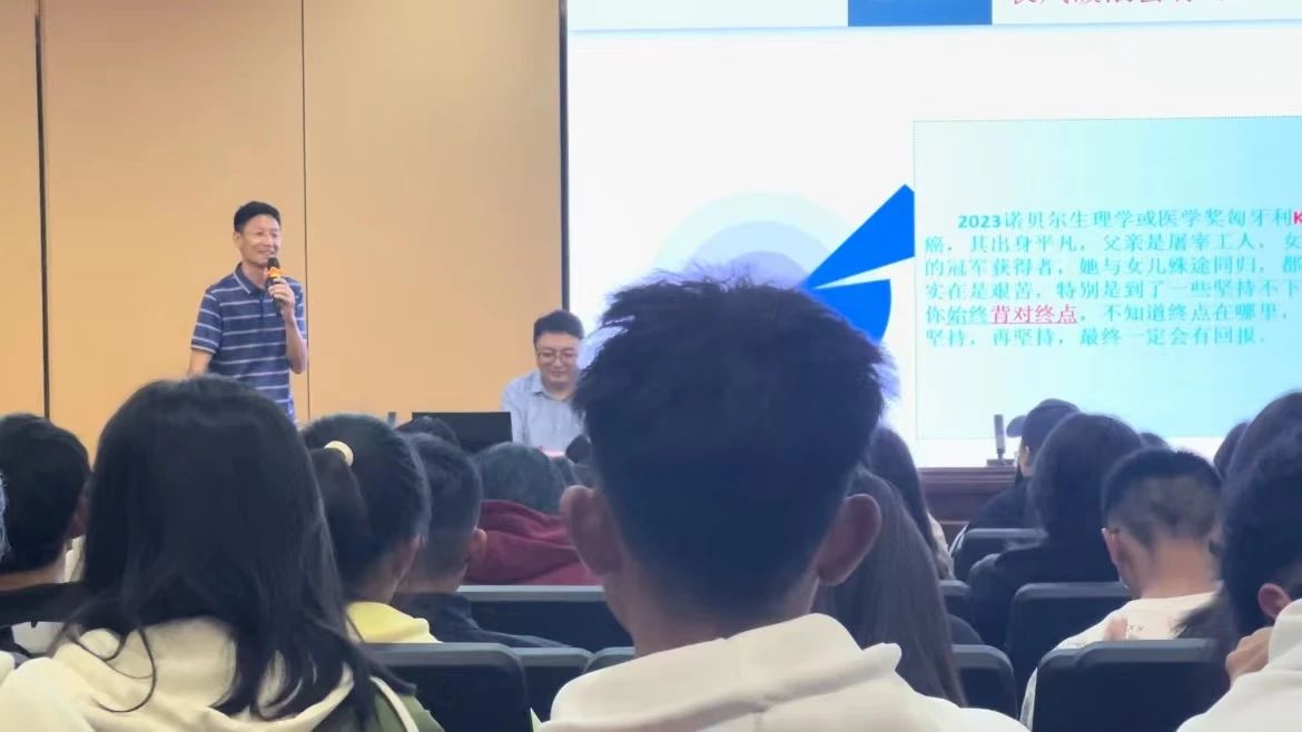 接着,此次座谈会以“用坚持为梦想插上翅膀”为主题,结合校友顾相伶的人生经历,进行经验交流。在座谈交流开始阶段,校友顾相伶以四个标题总结。“纸上得来终觉浅,绝知此事要躬行”,用陆游的一句诗概括数十年光阴。面对考研与否的十字路口,他指出,要始终坚持内心目标,有条不紊地安排考研时的工作,精准准备,最终以高分考取高校。随后介绍硕博经历时,他表示该阶段更是重要人生拐点。“千锤万凿出深山,烈火焚烧若等闲”,在面对诸多困难仍然用拼搏、勤奋作矛,为自己赢得机会,不甘人后,努力克服专业知识基础薄弱的困境,英语亦或实验课题都专精覃思,完成从差生到优等生的转变。“雄关漫道真如铁,而今迈步从头越”,用自身经历告诉我们,从小事做起,要有重新再来的勇气。最后引用“长风破浪会有时,直挂云帆济沧海”一句,要明确目标,并为之坚持,充分发散思维,懂得创新。他表示,大学生要尽早规划明确自身目标,在人生关键节点,要做好充分思想准备,笃行不怠。在当今日新月异的智能时代,要灵活借助工具提高效率,更要了解前沿信息,及时更新认知结构,才能行稳致远、成为栋梁之材。