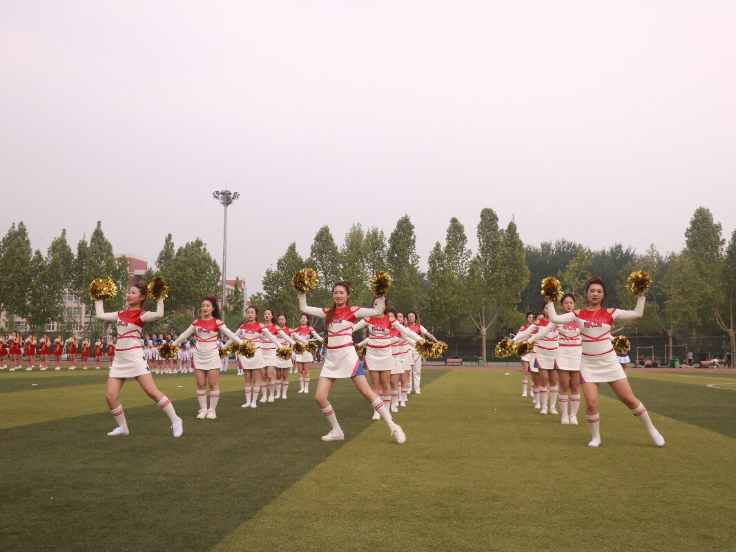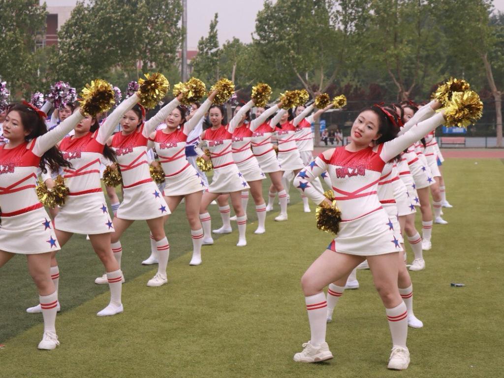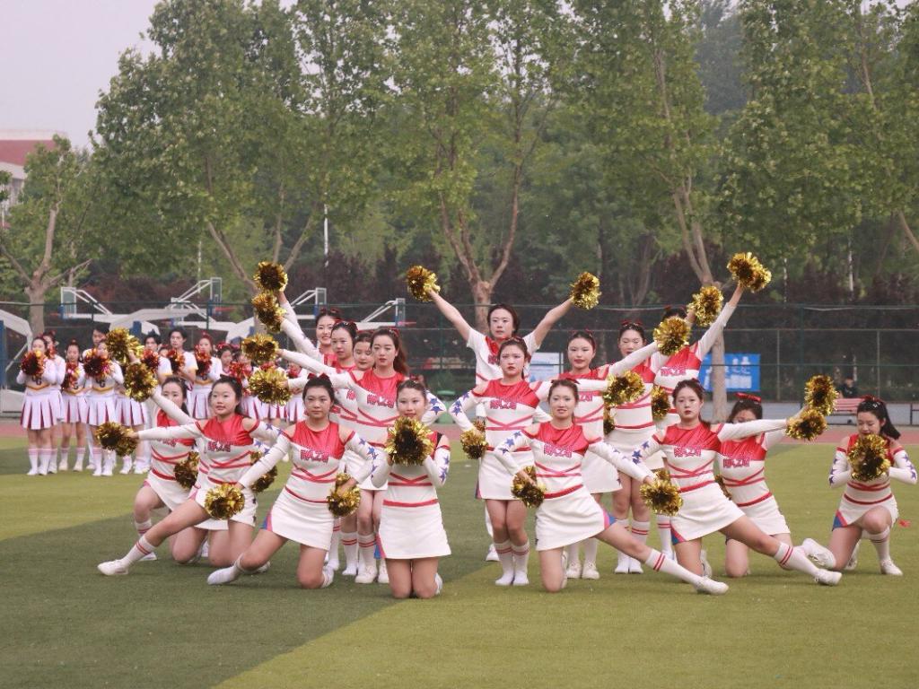 经管学院啦啦操队高举金色花球
