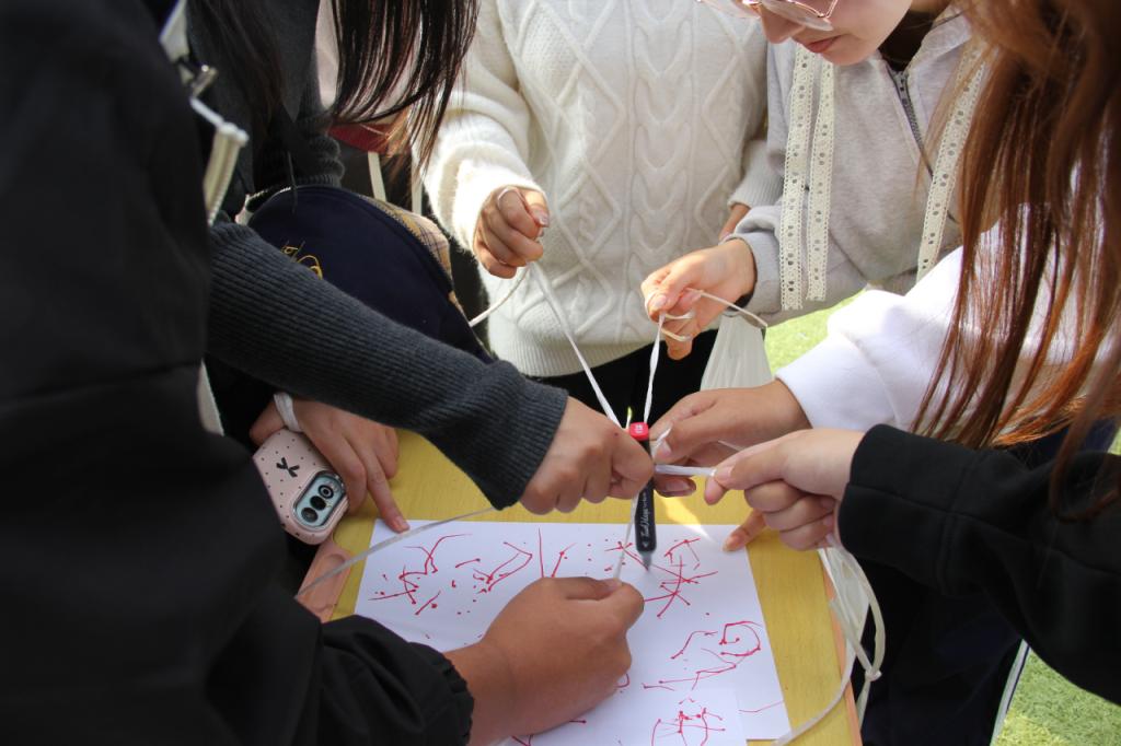 游戏开始后,各支队伍的成员紧紧地拉住绳子的末端,他们的任务是在接下来的30分钟内,在不接触笔的情况下,通过团队协作,写出尽可能多的字。尽管过程中困难重重,但队员们始终保持着高度的团队合作精神,相互鼓励,共同克服了一个又一个难关。