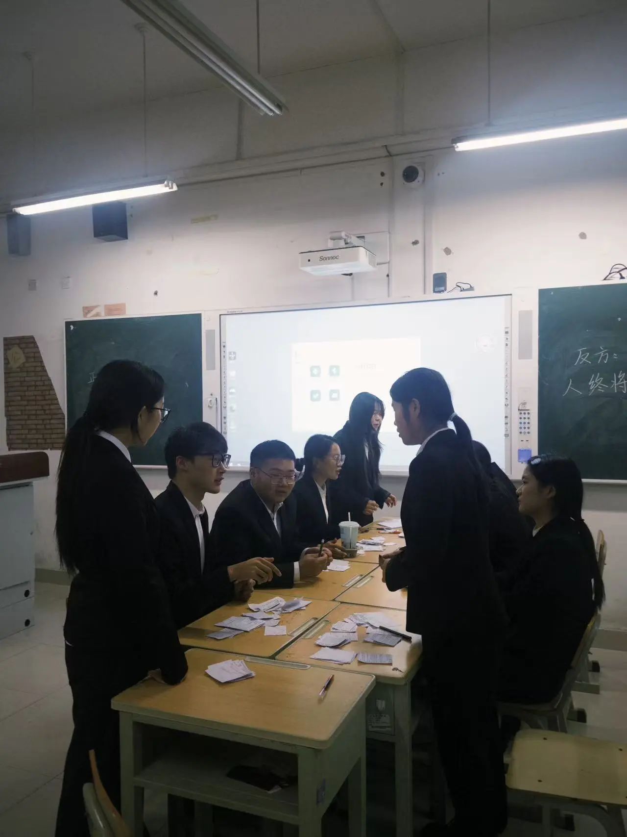 在校园的某一间教室里,在晚10点 左右我们正在讨论我们新一轮的辩题“人终将孤不孤独”,桌上是写满思路的纸片,是我们搜集的各种材料。对于我们来说,辩论没有真正的输赢。是每一次的唇枪舌剑,那是我们思维思维的碰撞;每一回的 据理力争,那是我们成长的见证。在辩论场上没有绝对的胜负,只有不断突破自我的勇气。在这方小小的天地,我们为了热爱全力以赴,向着思维的巅峰攀登,用智慧和坚持书写属于我们自己的励志篇章 “生活就像海洋,只有意志坚强的人才能到达彼岸”不负所托,我们获得胜利。