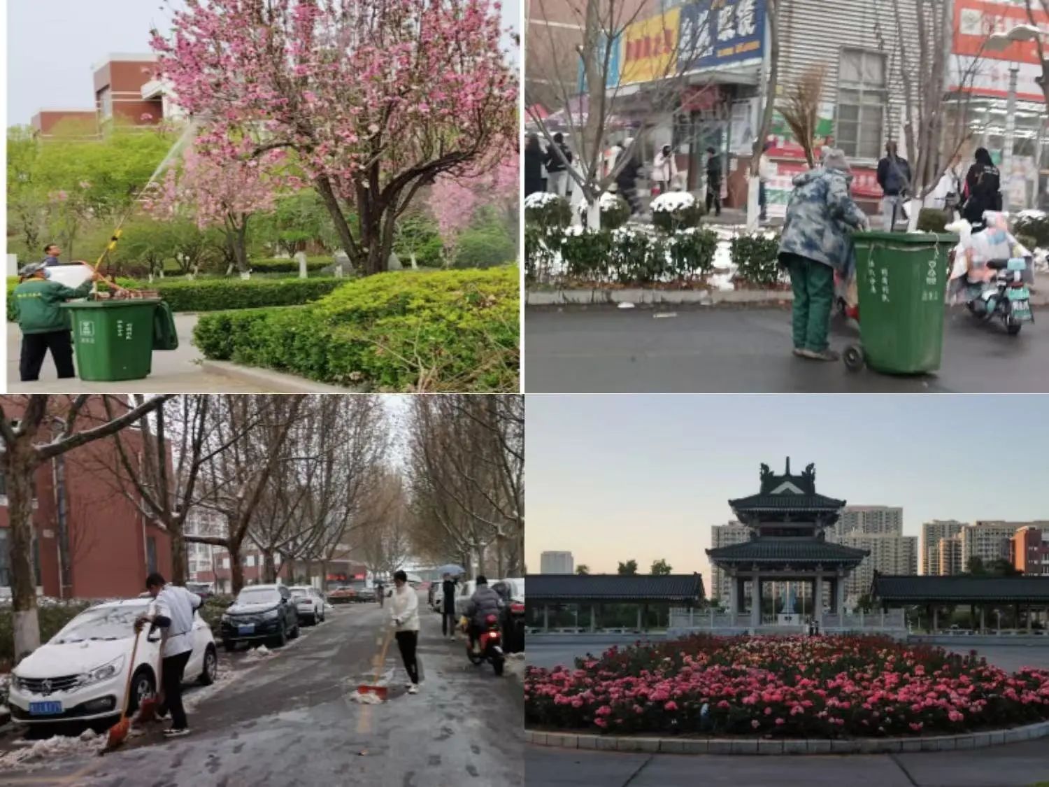 这样一群人,他们是校园的环卫工人,也是校园里无声的励志榜样。镜头里,无论是骄阳似火的盛夏,汗水湿透他们的衣衫,额头豆 大的汗珠滚落,滴在刚刚上清扫干净的地面;还是寒风凛冽的冬日,他们裹着厚重的棉衣,手持铁锹, 奋力清理着厚厚的积雪,保障师生的出行安全。这组照片记录下的,不仅仅是他们劳作的身影,更是一种激励着我们在学习和生活中,无论遇到何种困难,都要保持坚韧不拔、脚踏实地的励志精神。