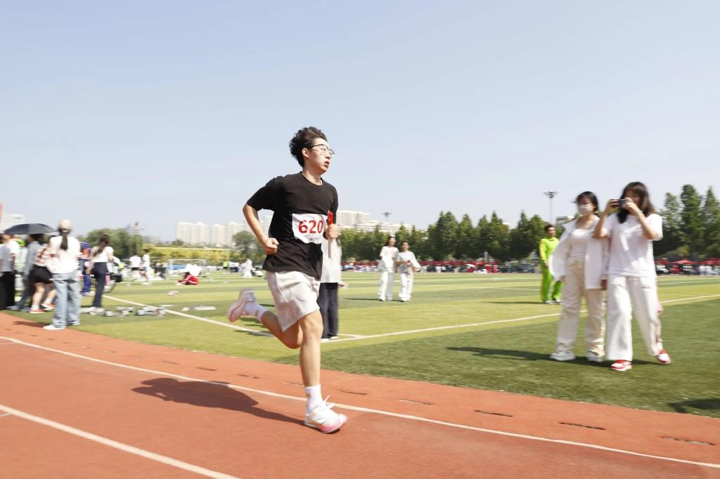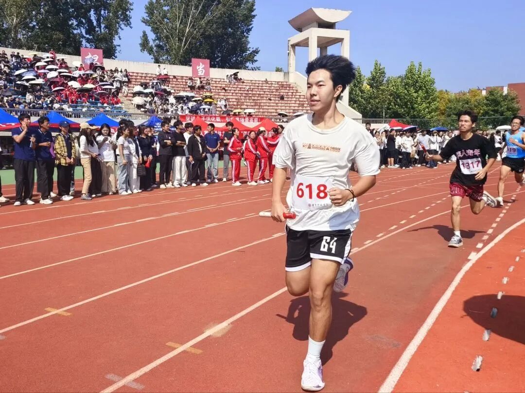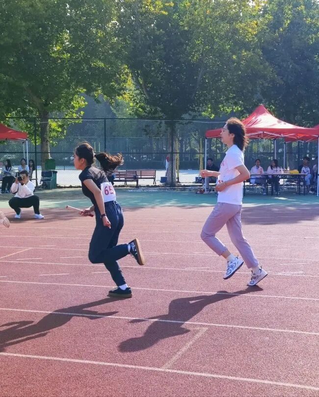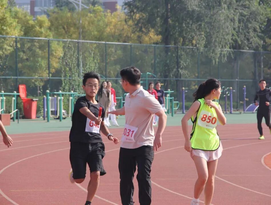 感迅捷步履,如鲸腾碧浪,似电掠长空接力棒在师生手中传递