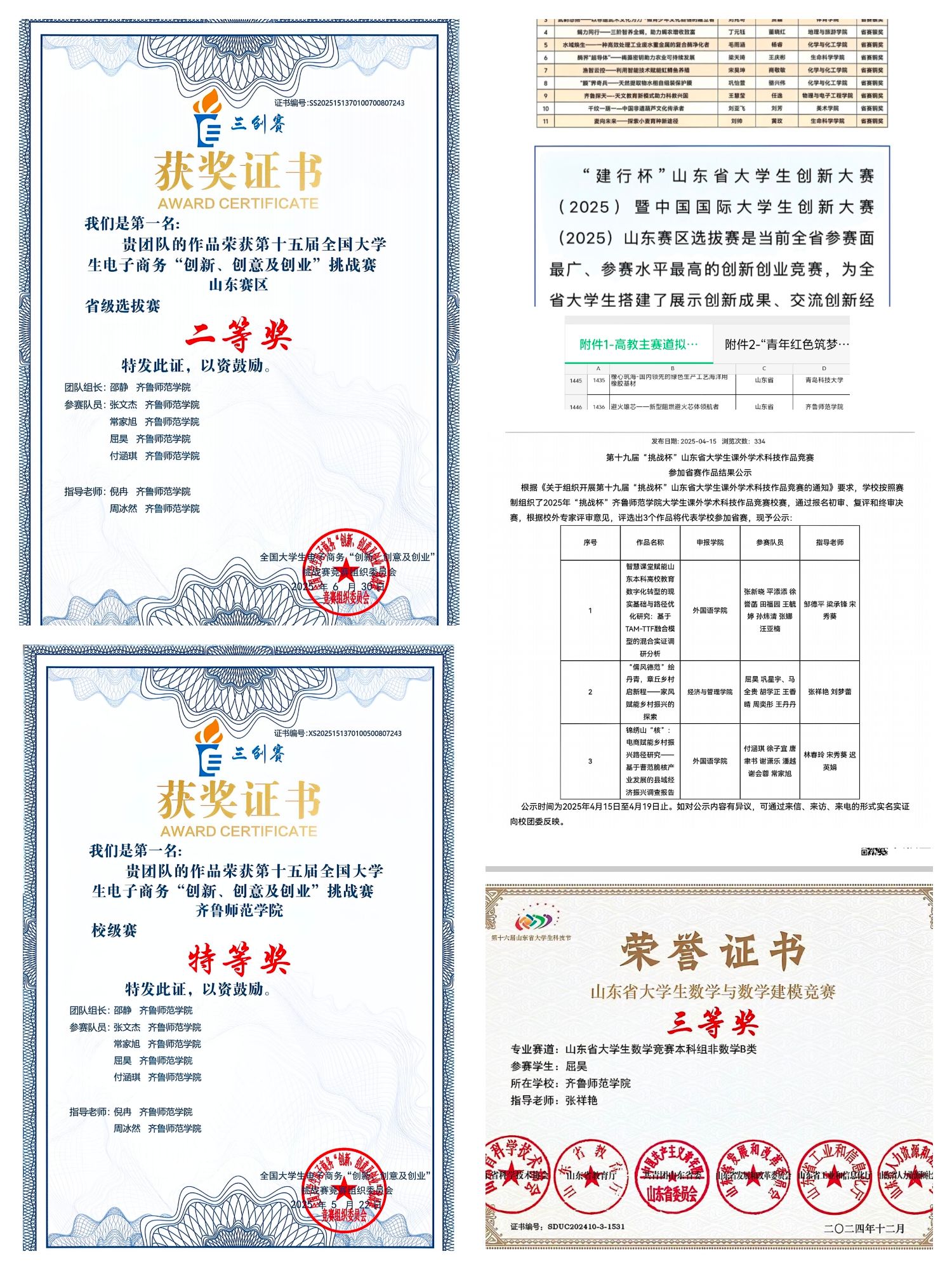 屈昊同学踊跃参与各类竞赛,荣获国家级奖项4项、省级奖项11项,校级奖项20项。其中,在中国“互联网+”大学生创新创业大赛比赛中获国铜奖项,全国高校商业精英挑战赛创新创业竞赛创业计划赛道全国总决赛中荣获国家一等奖,全国高校商业精英挑战赛创新创业竞赛流通业经营模拟赛道全国总决赛获得国家三等奖,在“挑战杯”、“三创赛”、“正大杯”、“全国大学生数学竞赛”中均获得优异奖项。通过参与国家级、省级比赛积累大赛经验,丰富学业经历, 不断提升综合素养。