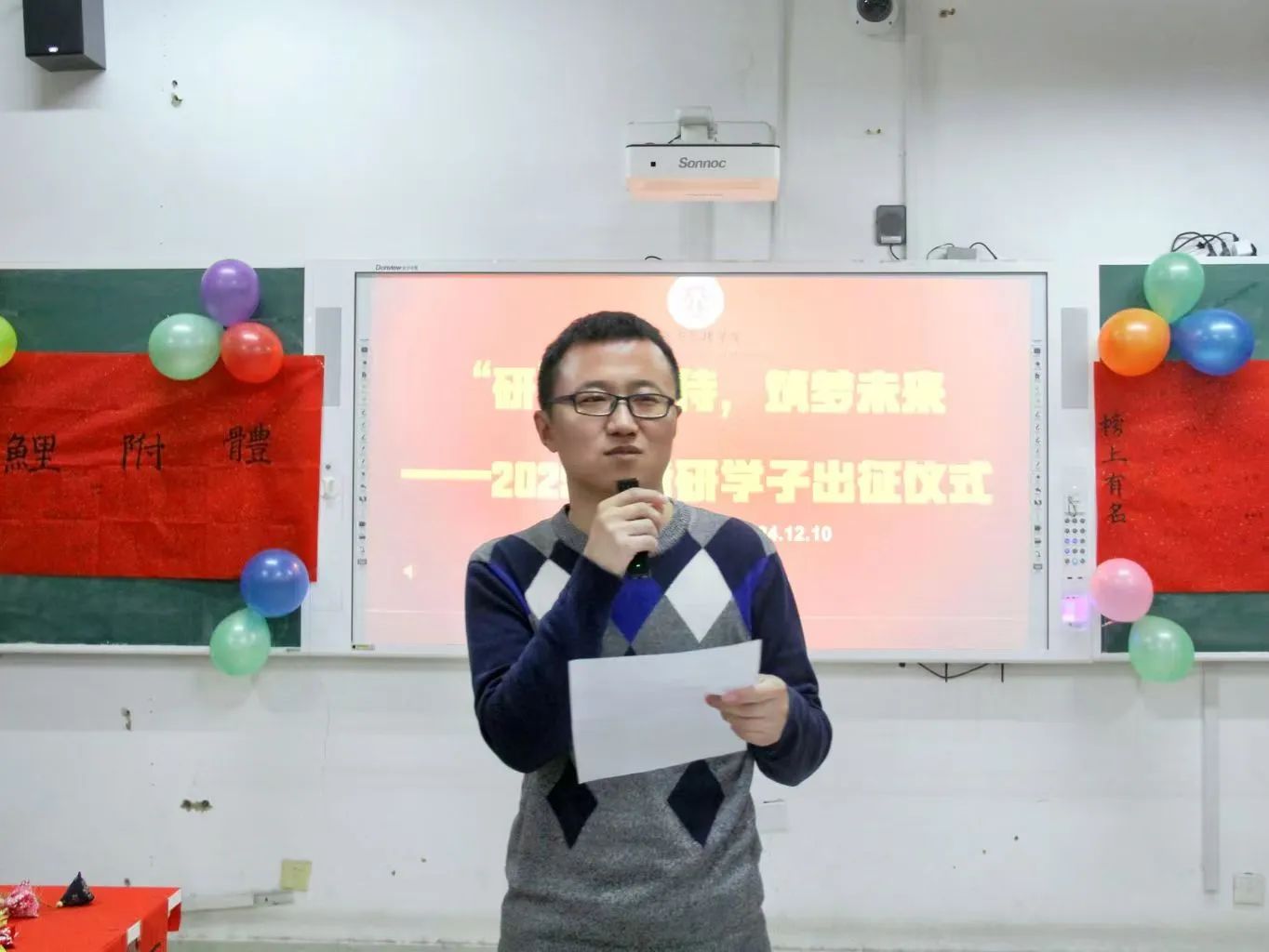为缓解我院考研学子考前压力,坚定考研信念,增强必胜信心,我院于12月10日下午在一号教学楼B227成功举办2025届考研学子出征仪式。