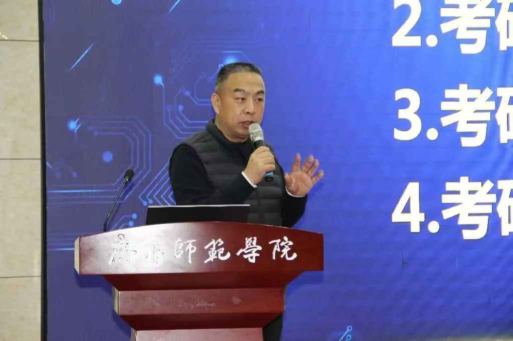 会议伊始,周勇从考研初始阶段备考复习方案、考研必备信息收集途径等角度进行多维度分析。周勇就我院现状,为同学们如何备战考研、如何择业择校进行针对性探讨。最后,周勇鼓励同学们积极响应国家人才战略,将个人理想融入国家民族的伟大事业。