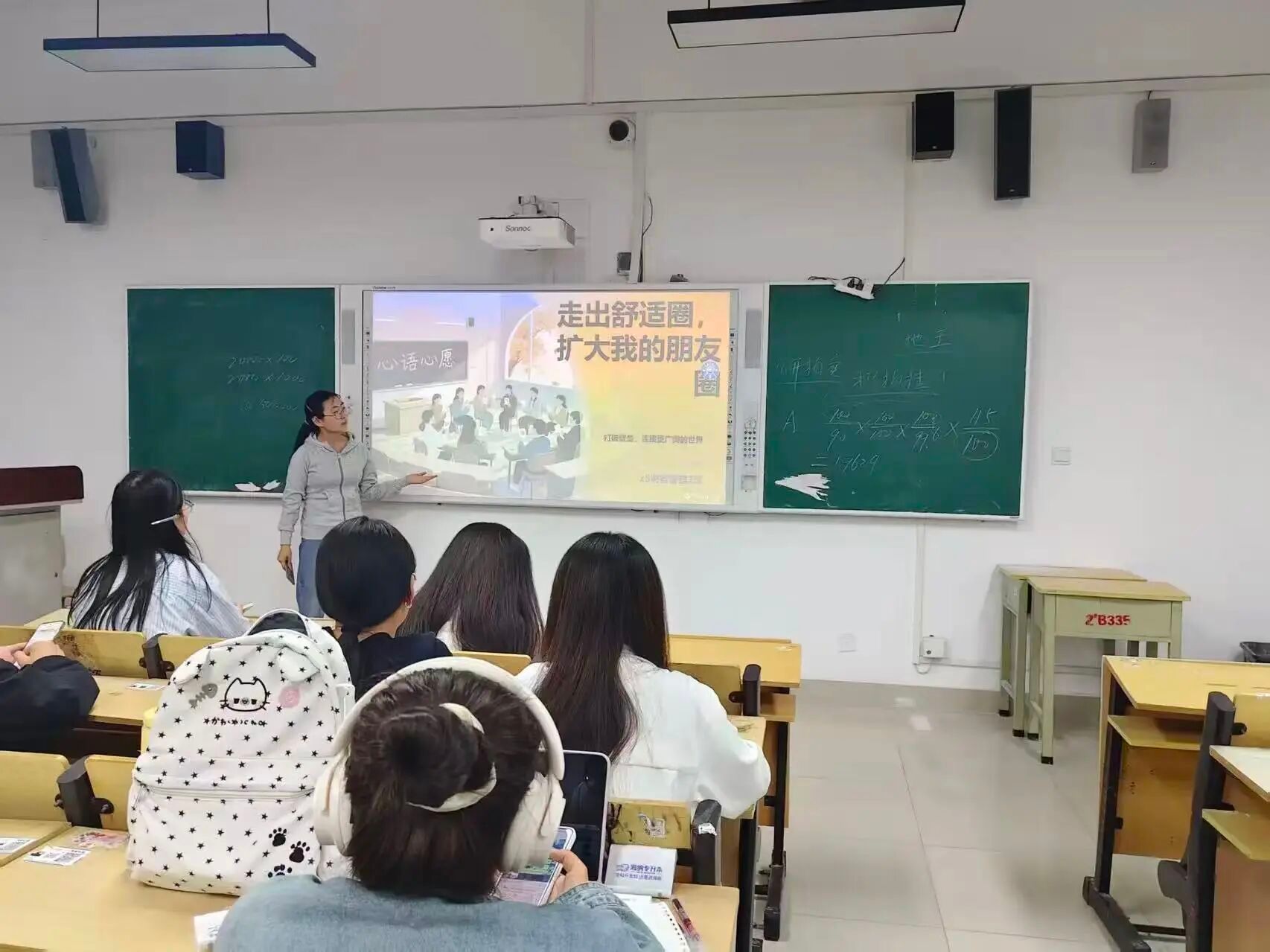 为引导同学们打破社交局限,勇敢走出个人舒适区,以开放自信的心态融入集体生活,我院生活心理部于4月15日晚自习时段,在一号教学楼各班级晚自习教室开展了以 “走出舒适圈,扩大我的‘朋友圈’” 为主题的心理班会。